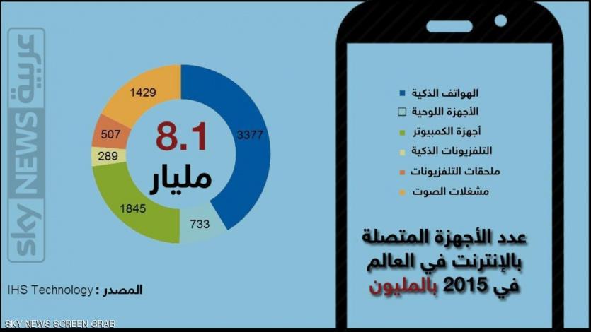 نشرت مؤسسة "آي إتش إس IHS "، التي تعد مصدرا مهما للمعلومات والتوقعات العالمية في مختلف القطاعات، تقريرا جديدا يوم الجمعة يكشف أرقاما استثنائية لعدد الأجهزة المتصلة بالإنترنت حول العالم.