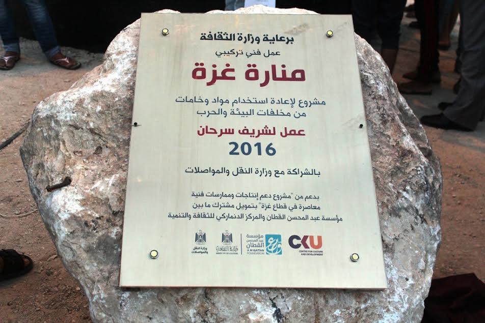 من ركام وبقايا المنازل المُدمرة بكافة مناطق قطاع غزة وبطريقة فنية جميلة، انشأ الفنان التشكيلي شريف سرحان "منارة غزة"، عبر مشروع يعتمد على إعادة تدوير مخلفات الحرب الإسرائيلية على قطاع غزة وتركيبها بشكل فني بصري معاصر، لكي يُمثل عمل فني في الفضاء العام أمام الجمهور بغزة.