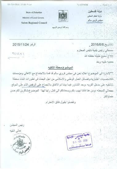 كما أوضح طبيلة أن بلدية نابلس قد فوجئت مؤخرا برفض القرى الشرقية لهذا المشروع من خلال المناشدة الرسمية في صحيفة القدس والموجهة للجهات الرسمية بعدم إقامة هذا المشروع بحجة قربة من المنازل، علما أن المجالس قد طلبت إزاحة موقع المحطة لمئتي متر، وإقامة حدائق في محيط المنطقة، ووافقت البلدية على ذلك، إلا انها رفضت مؤخرا بشكل قاطع إقامة المشروع.