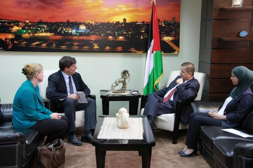 عقد وزير الصحة د. جواد عواد اجتماعاً مع نائب رئيس بعثة الوكالة الأميركية للتنمية الدولية جوناثان كامين ومديرة مشروع تنمية قدرات القطاع الصحي الفلسطيني كارلا فوساند.