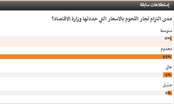 في سؤال طرحته شبكة رايــة الاعلامية على مرتادي موقعها الالكتروني، حول اراءهم في اسباب ارتفاع اسعار السلع التموينية في رمضان؟ وحول مدى التزام تجار اللحوم بالاسعار التي حددتها وزارة الاقتصاد، اجمعت الغالبية العظمى ان لا التزام من قبل التجار باسعار وزارة الاقتصاد.
