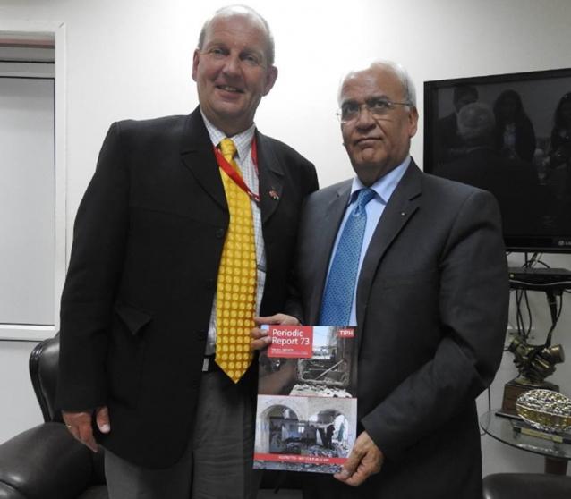 إلتقى اللواء أينار جونسن، رئيس بعثة التواجد الدولي المؤقت في مدينة الخليل بالدكتور صائب عريقات، أمين سر اللجنة التنفيذيه لمنظمة التحرير الفلسطينية في مدينة أريحا.
