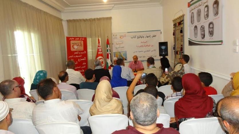نظمت الحملة الدولية للتضامن مع الأسرى في سجون الإحتلال الإسرائيلي "تضامن" وجمعية ألق الثقافية التونسية حفل توقيع وإشهار كتاب "السياسة بين الشرعية والواقعية" للأسير المقدسي محمود عيسى في مقر المركز المغاربي للتنمية المقدسية في تونس العاصمة يوم الاربعاء 13 تموز، بحضور النائب في المجلس التشريعي ناصر عبد الجواد ونائب رئيس حركة النهضة الأستاذ عبد الحميد الجلاصي.