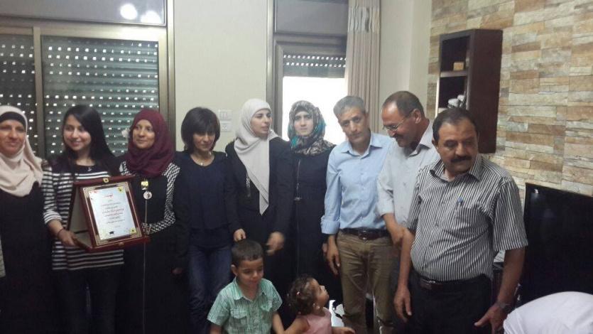 والد ووالدة الشهيد مهند الحلبي ووالد الشهيد بهاء عليان والاسير المحرر محمد القيق وزوجته وعدد اخر من اهالي شهداء واسرى الهبة الشعبية، قدموا التهاني والتكريم لعائلة المتفوقة في الثانوية ياسمين مراد عبد الجبار سليمان الحاصلة على معدل 99.4 في نابلس، بعد عدة زيارات لمنازل المتفوقين في نابلس وجنين، خلال اليومين الماضيين.