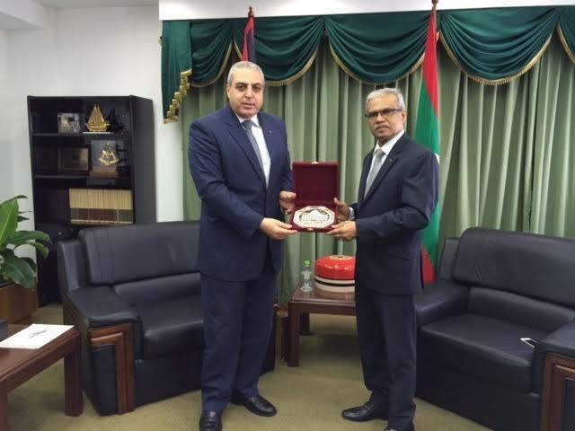 السفير انور الأغا يلتقي مع الرئيس المالديفي و يطلعه على تطورات الأوضاع