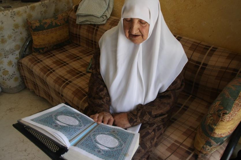 نعيمة لا تتوقف عن تلاوة القرآن خاصة إن خلت بنفسها، " أنا إنسانة أمية وأشتهي التعليم منذ القدم، وسابقا كان زوجي مريض وكنت مشغولة به، وأنا لم أنجب، ولو أنجبت لربما لانشغلت بهم ولم أحفظ القران".