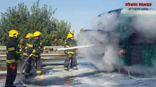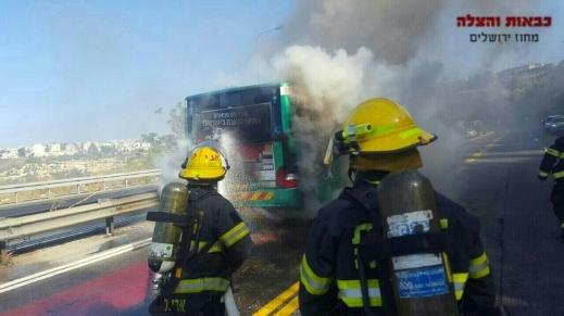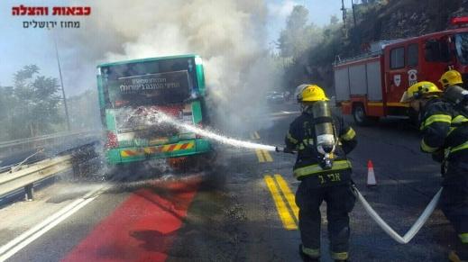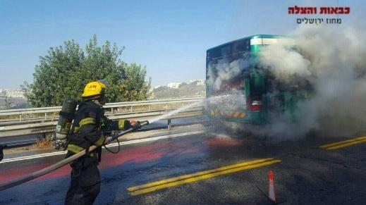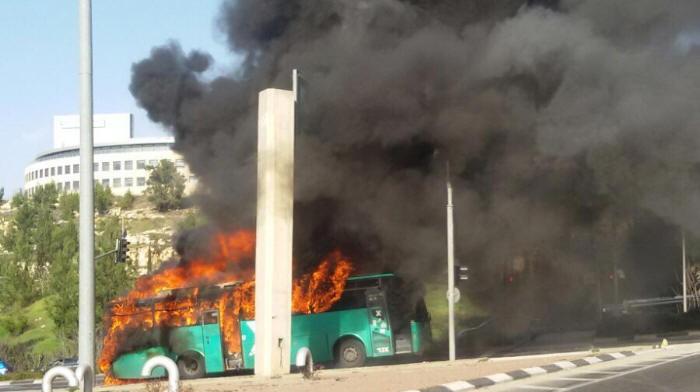 فيديو: اشتعال النيران في حافلة اسرائيلية وسط القدس المحتلة