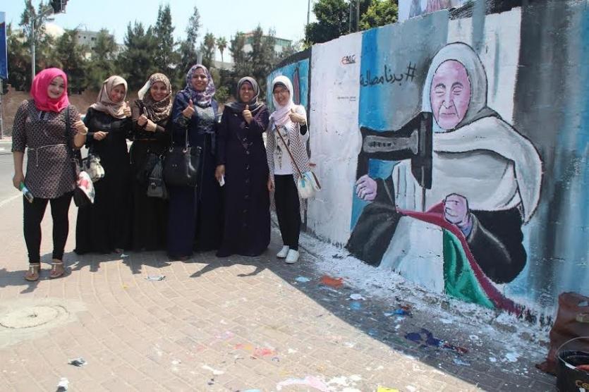 وتضمنت المبادرة نشاطين، بدأ برسمة جدارية في وسط مدينة غزة، وتلتها توزيع مئات الأعلام الفلسطينية على سائقي السيارات والمارة، وجاءت هذه المباردة للتأكيد على أهمية المصالحة الوطنية الفلسطينية، وللتعبيرعن رفض النساء للانقسام الفلسطيني وضرورة استعادة اللحمة الوطنية الفلسطينية الداخلية.
