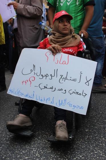 المؤسسات الرسمية معظمها غير مجهزة للأشخاص ذوي الإعاقة كما قال الجعبري والذي أضاف " أنا لا أعاني وحدي، وإنما كل الأشخاص ذوي الإعاقة، فمجمع المركبات رغم أنه حديث الإنشاء إلا أنه غير مجهز لنا، بالتالي أحيانا نضطر أن نأخذ "طلب سيارة" مع المركبات العمومية لأننا لا نستطيع الوصول إلى المركبات في المجمع، وهذا الأمر يرهقنا مالياً".