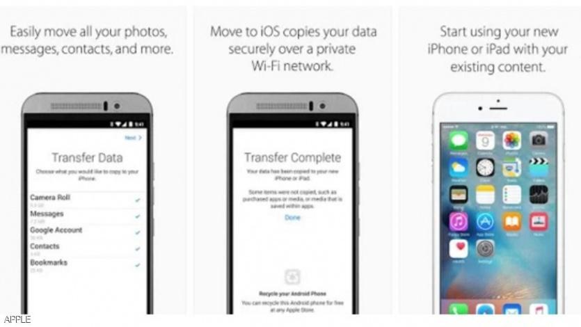 ومهمة هذا التطبيق، الذي طورته شركة أبل، هو نقل قوائم الاتصال والمحتويات والرسائل من هاتف يعتمد على نظام أندرويد إلى آخر يعتمد على نظام iOS.