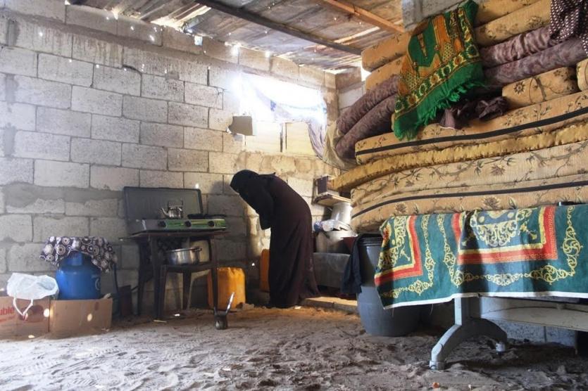 أسرة الغزي "رمضان محمود العطار" تعيش في ظروف تفوق كل التوقعات، فالفقر يضرب كل أفرادها، ويظهر في معظم جوانب مسكنهم البسيط، الذي يشبه "الخيمة" أو أقل.