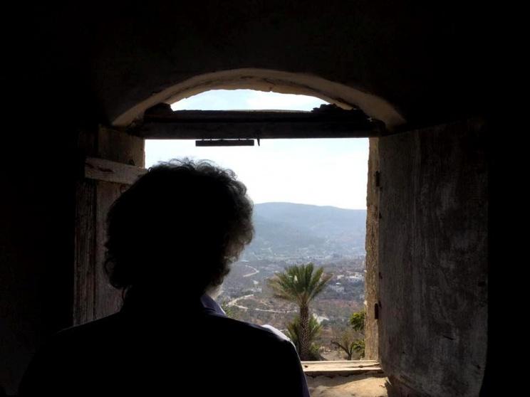 "هنا ولدتني امي"، يشير الى سقيفة بيت قديم ثم يكمل مسيره ويقف على نافذة مطلة على قرية بزاريا "ومن هنا كانوا يراقبون خط سكة حديد الحجاز، اتخيلهم الان جالسين في اربعينات القرن الماضي على سطح هذا البيت ويراقبون القطار".