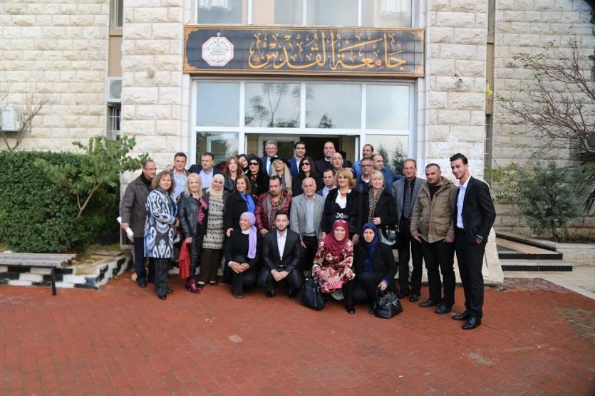 استقبل رئيس جامعة القدس أ.د. عماد أبو كشك اليوم وفداً عربياً رفيع المستوى ضم مجموعة من الشخصات العربية والفلسطينية ذات التأثير، كان منهم الشيخة نوال الصباح من الكويت والفنانة التونسية صوفيا صادق، والاعلامي المصري أحمد سمير، ووفد من مؤسسة سيدة الأرض في زيارة للجامعة تهدف إلى التعرف على تاريخها وبرامجها ومرافقها المختلفة.