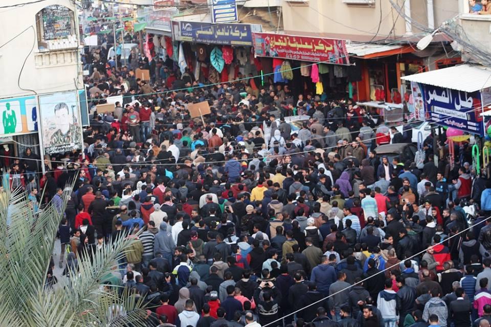 خرج آلاف المواطنين في مخيم جباليا شمال قطاع غزة مساء اليوم الخميس، في مسيرات كبيرة تنديداً باستمرار أزمة الكهرباء التي أثّرت على كافة قطاعات الحياة، حيث تقلصت ساعات وصل التيار الكهربائي الى 3 ساعات فقط.