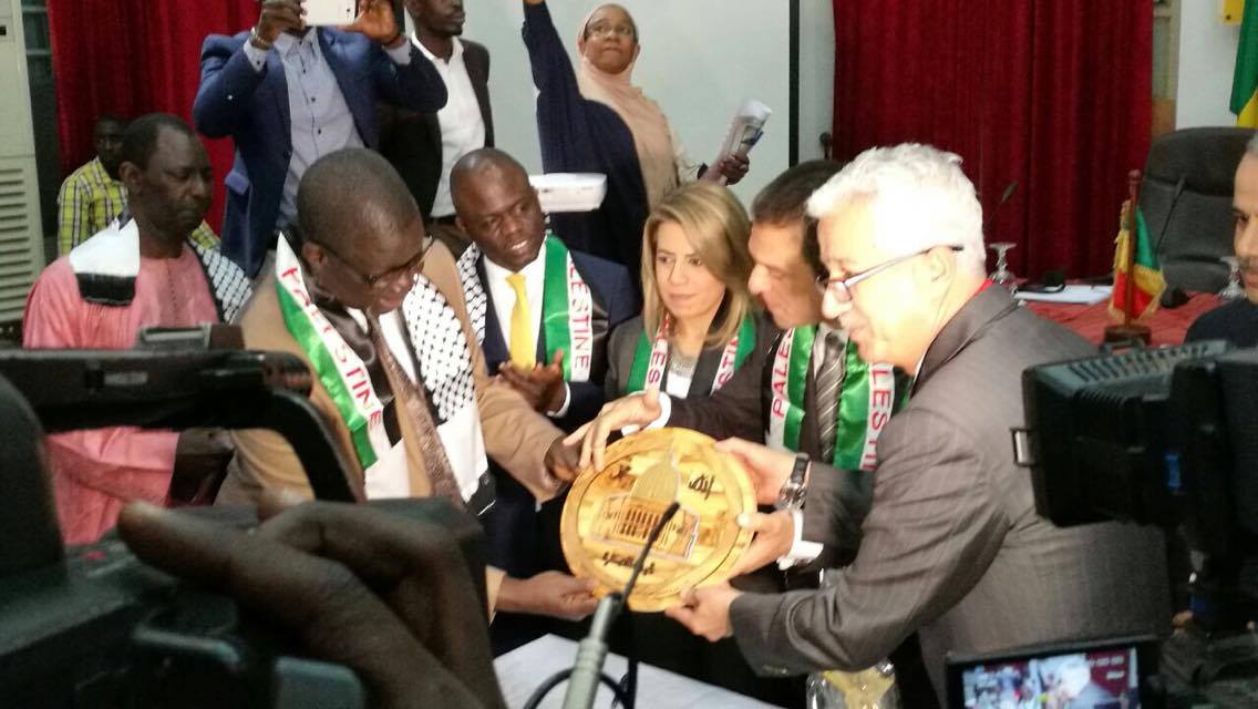 وفي نهاية الاجتماع قدم ولويل هدية تذكارية لكل من وكيل الوزارة ورئيس الغرفة التجارية داعيا اياهم ورجال الأعمال السنغاليين الى زيارة فلسطين والاستثمار فيها.