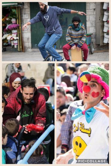 أحمد ومؤمن وبشار، إضافة الى معتز قواسمي وليلى سعادة، وميرينيا يعقوبيان هم فريق "سيرك الشارع" الذي تأسس قبل نصف عام، ويعتمد الفريق في أدائهم على السيرك والتهريج، والموسيقى الغير مسجلة، إضافة الى ألة الجيتار، يقول أحمد الجعبة أحد أعضاء الفريق:"أول عرض قدمناه كان نهاية العام الماضي وتفاعل الناس معه كان جيد، فحضر أكثر من مئة شخص، لم نتوقع ذلك خاصة أن الإعلان كان قبل ساعات من العرض".