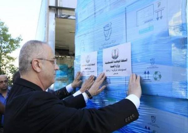قال رئيس الوزراء الفلسطيني، رامي الحمد الله، أنه أشرف بنفسه اليوم، الأحد، "على تسيير 27 شاحنة محملة بالأدوية لأبناء شعبنا في قطاع غزة، وذلك في إطار استمرار جهود القيادة وعلى رأسها الرئيس محمود عباس والحكومة في دعم صمود وتلبية احتياجات أهلنا في القطاع".