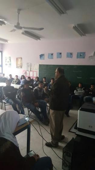 نظم قسم الطاقة المتجددة في شركة كهرباء محافظة القدس اليوم بالتعاون مع إدارة مدرسة عين عريك الثانوية المختلطة برام الله، محاضرة توعوية لحوالي 45 طالباً من الصف العاشر حول أهمية الطاقة الشمسية في فلسطين.