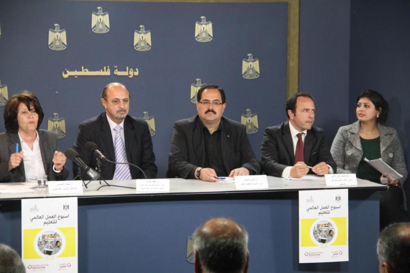 اعلن اليوم في رام الله عن انطلاق فعاليات اسبوع العمل العالمي للتعليم وجاء هذا الاعلان في مؤتمر صحفي نظمه الائتلاف التربوي الفلسطيني بالشراكة مع وزارة التربية والتعليم العالي ومكتب اليونسكو في فلسطين وبرنامج التعليم في وكالة غوث وتشغيل اللاجئين، في قاعة المؤتمرات الحكومية وتحدث في المؤتمر وزير التربية والتعليم د. صبري صيدم والسيد لودوفيكو فولن كلابي مدير مكتب اليونسكو في فلسطين والسيد مهند بيدس مدير برنامج التعليم في وكالة الغوث الى جانب السيدة ماجدة المصري كممثلة عن الائتلاف التربوي الفلسطيني.