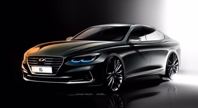 ويتميز تصميم سيارة السيدان الكبيرة بخطوط انسيابية متدفقة، وأشكال جذابة بسيطة تمثل تحديثاً شاملاً للمحاور البصرية الرئيسية التي تبدعها هيونداي. وتحمل مقدمة السيارة أكبر نسخة من الشبك الأمامي ذيالفتحات المتوالية المتراتبة والمُسمّى "كاسكيدينغ غريل" (الشبك متوالي الانحدار)، الذي يُعتبر أحدث عناصر التصميم في هيونداي ويفرض حضوراًجديداً واثقاً لعلامتها التجارية.