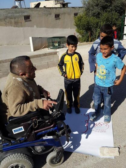 بكرسيه المتحرك يرسم قصته!