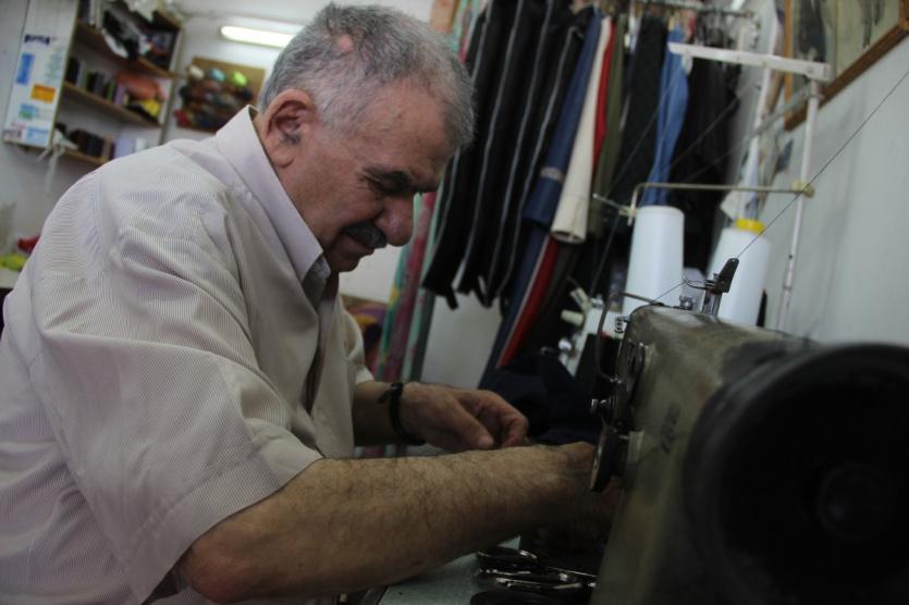 الحاج زين الدين محمد أبو شخيدم "74 عاماً"، من مدينة الخليل، انخرط في صفوف مهنة الخياطة منذ مراهقته، بفترة تقدر ستة عقود متتالية، وما زال يتربّص شروق الشمس كلّ صباح، حتى ينفض عن نفسه الكسل ويذهب لفتح مخيطته في منطقة الحرس ومباشرة العمل بنفسه، رافضاً فكرة الجلوس بالمنزل وترك العمل لأولاده كونه يؤمن أن العمل الحياة.