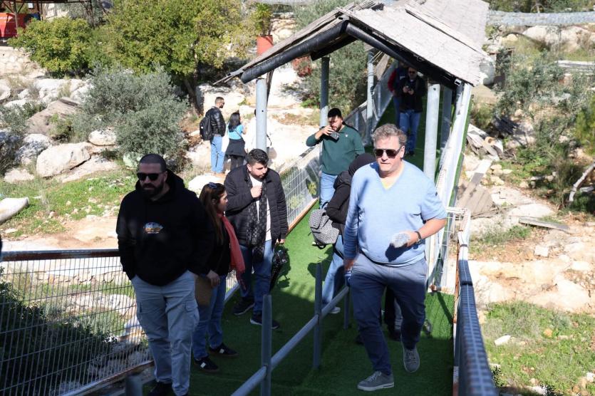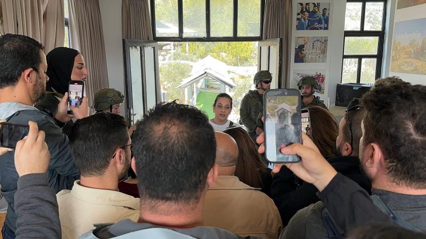 وخلال الجولة، داهمت قوات الاحتلال الإسرائيلي المكان، واحتجزت الصحفيين والمشاركين داخل قاعة المركز التعليمي، وقامت بتفتيشهم وفحص بطاقات هوياتهم، ومنعتهم من التصوير، وذلك عقب إطلاق أحد المستوطنين النار في الهواء في محيط القرية.
