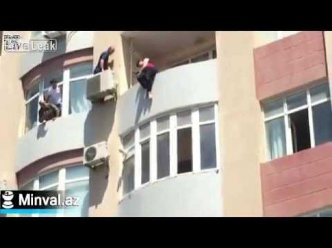 حاولت فتاة مخمورة بجمهورية أذربيجان الانتحار من الطابق الخامس بمبنى شاهق الارتفاع، إلا أن أحد رجال الحماية المدنية تمكن من إنقاذها في الوقت المناسب.